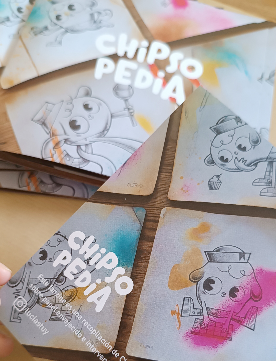 Chipsopedia Vol. I es un pequeño fanzine fotográfico que recopila todos los Chipsos, ilustraciones que creé sobre 18 personajes de especie indeterminada que comen dulces y snacks.